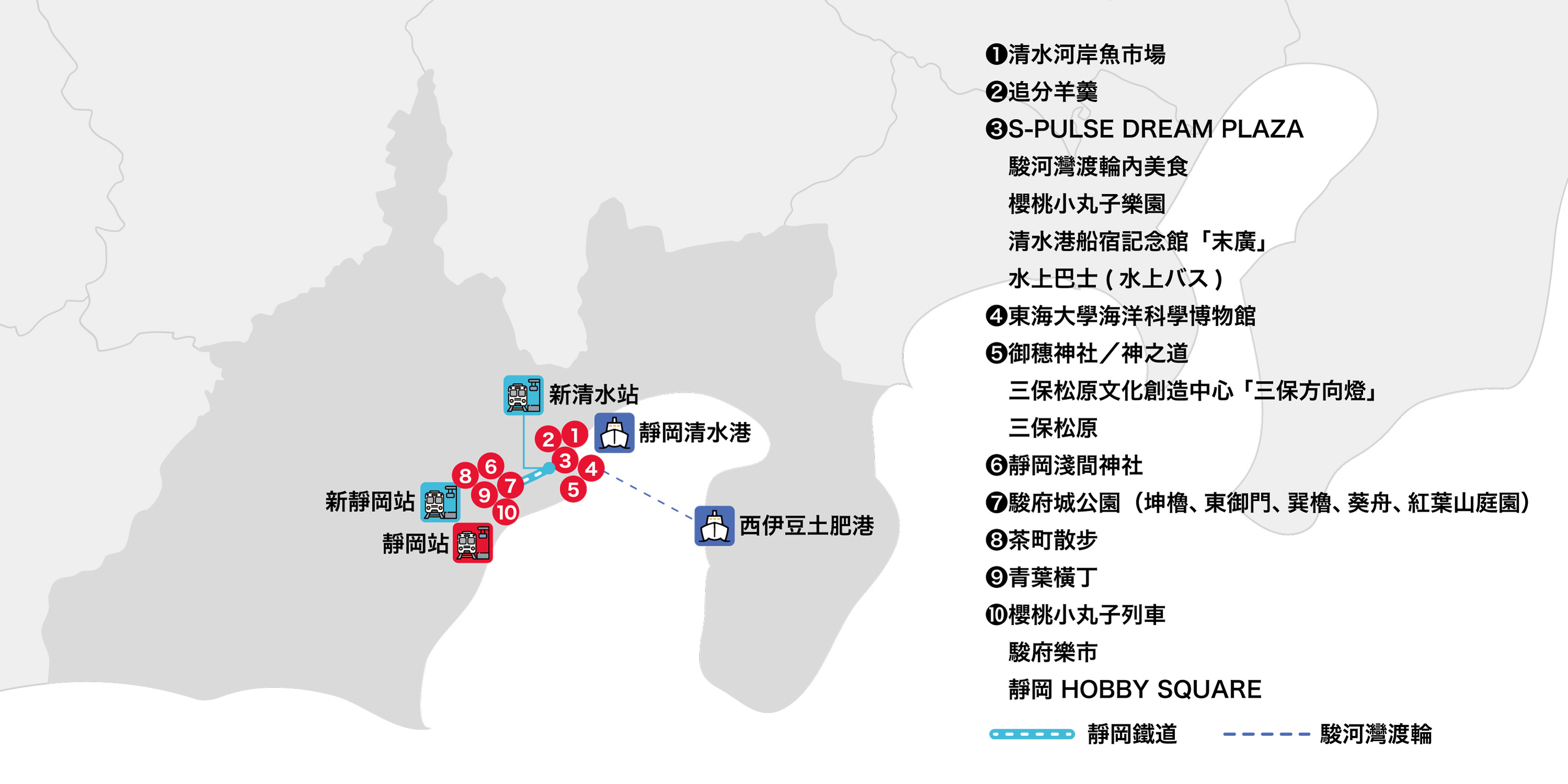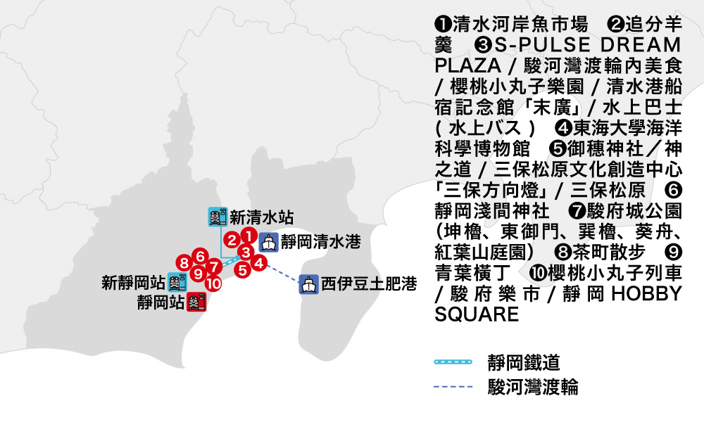 從東京搭電車約1小時就可以抵達的靜岡縣,有什麼值得必訪的推薦景點呢?這次要帶大家搭乘駿河灣渡輪從海上眺望富士山,再利用靜岡鐵道電車,穿梭市區尋找櫻桃小丸子蹤跡,前往德川家康度過晚年的駿府城,還有必吃的靜岡關東煮!如此豐富行程,正在規劃一趟靜岡親子遊的你一定要來參考看看!